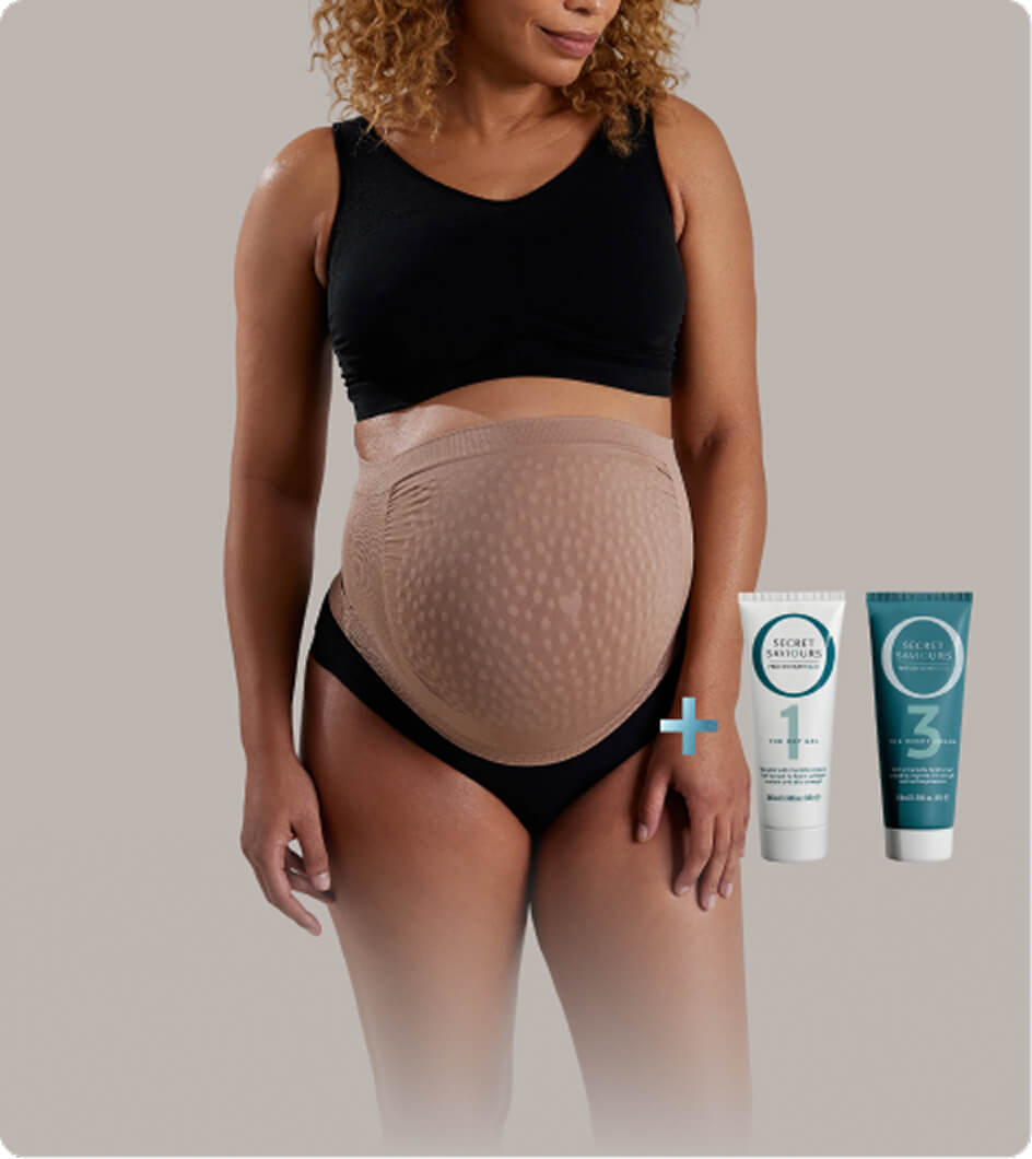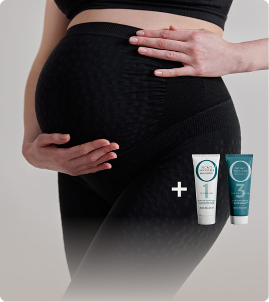 Pregnancy places unique demands on the skin. As the body grows, internal skin tension increases, which can contribute to stretch marks. Secret Saviours was created to support skin at this critical point, combining wearable support with targeted skincare to care for skin as it changes.