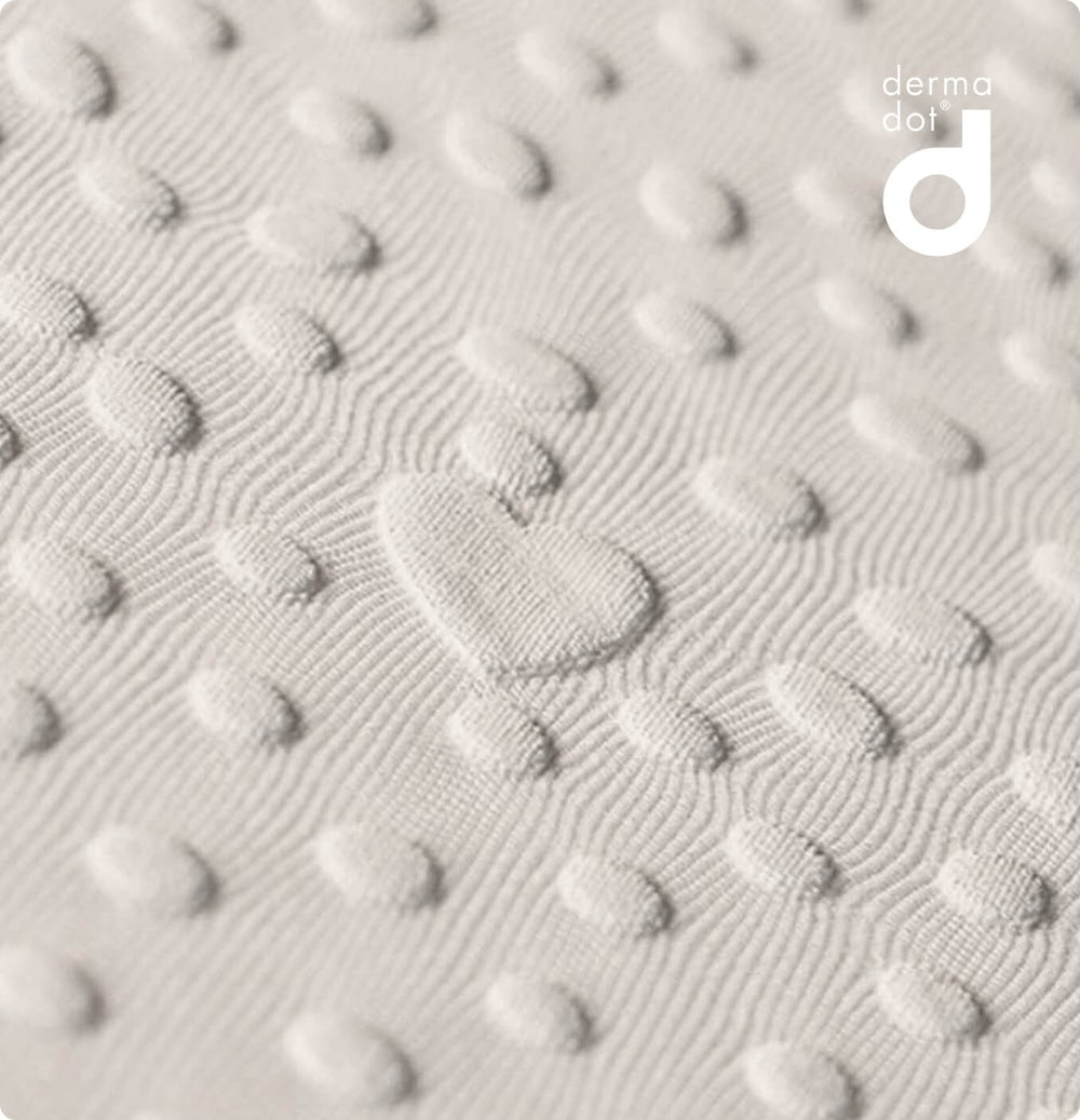 Derma Dot™ technology features uniquely designed pads integrated into the fabric to support skin as it stretches. The dots gently hold the skin in place, helping to disperse pressure and reduce internal skin tension as the body changes, supporting the skin at the point where stretch marks can form.