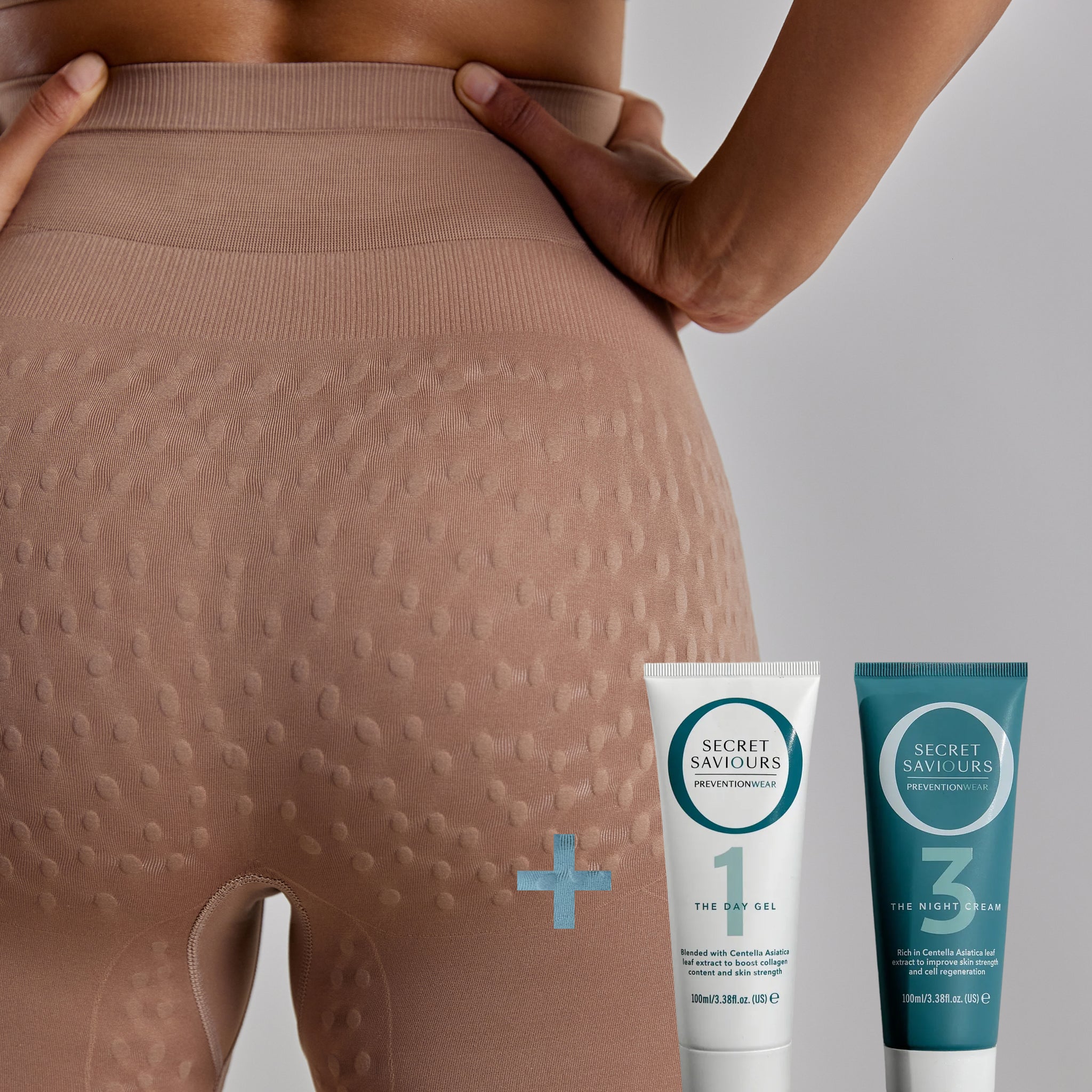 The super soft shorties are developed with Derma Dot™ pad technology  to equalise pressure as skin stretches, and block the path of stretch marks as they try to tear at right angles to your body’s natural skin lines, whilst offering bump and lower back support. The day gel helps the pads gently grip the skin and the night cream hydrates and rebalances your skin at the end of the day. Both our formulas are blended with Centella Asiatica to protect and strengthen your skin, whilst increasing its collagen content.